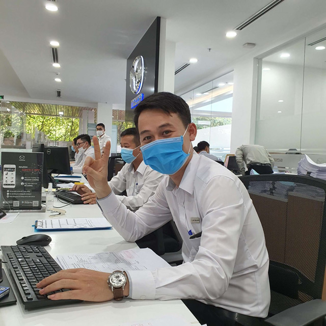 Được gặp mặt đồng nghiệp, được hỗ trợ khách hàng một cách tốt nhất là điều làm anh Phạm Minh Sang, TVBH KIA - Mazda Bình Tân cảm thấy vui sướng sau khoảng thời gian ở nhà quá lâu. Anh Sang bộc bạch: “Mặc dù được đi làm trở lại, ai nấy cũng đều vui mừng nhưng dịch bệnh vẫn còn đó nên khi gặp lại, mọi người đều tiết chế cảm xúc, hạn chế tiếp xúc gần. Nhìn những nụ cười qua ánh mắt, nhìn thấy mọi người vẫn ổn, đó là vui mừng nhất rồi.”