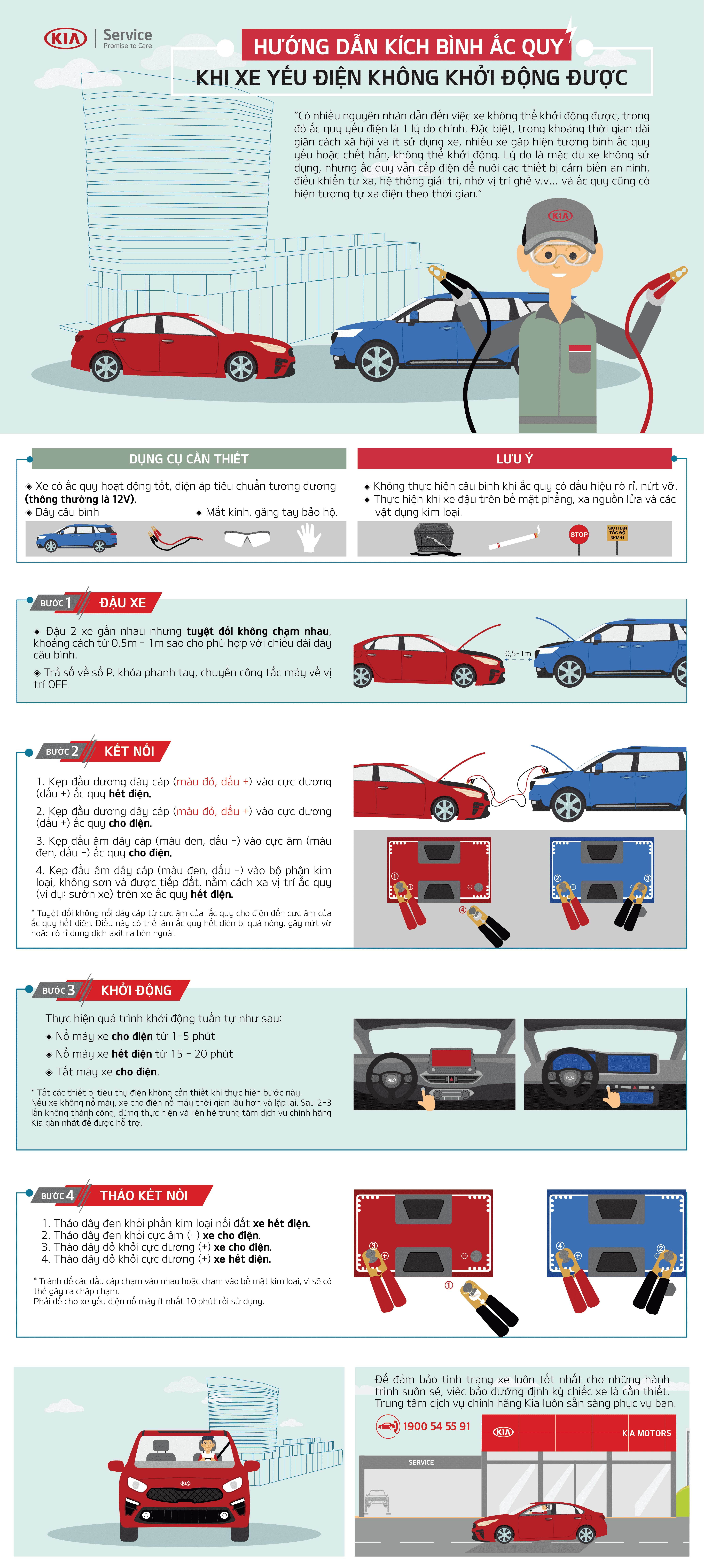 Nguyên nhân chính là do: tuy xe không sử dụng, nhưng ắc quy vẫn cấp điện để “nuôi” các thiết bị cảm biến an ninh, điều khiển từ xa, hệ thống giải trí, hệ thống đèn, v.v. và ắc quy cũng có hiện tượng tự xả điện theo thời gian, vì thế sẽ làm dòng điện trong bình ắc quy yếu đi.. Để giúp khách hàng không gặp trở ngại khi ắc quy hết điện, hãy tham khảo cách kích bình ắc quy từ chuyên gia kỹ thuật Kia.