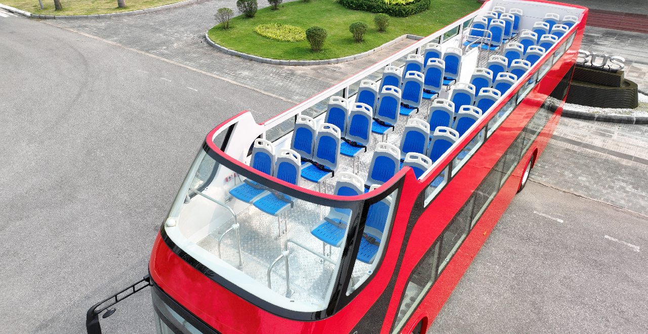 Tầng trên thiết kế với 30 chỗ ngồi. Layout ghế rộng rãi, khoảng cách giữa các hàng ghế 900mm thuận tiện cho hàng khách di chuyển. Ghế hành khách dạng nhựa, được trang bị thêm bộ đa ngôn ngữ, nút gọi tài xế. Ngoài ra, xe bus ngắm cảnh còn trang bị nhiều tiện ích như: 02 quầy bar rộng rãi; đồng hồ số, thanh chắn bằng inox xung quanh khoang lái.